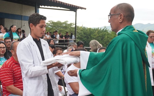 Al llegar al edificio de medicina de la Unerg, los participantes fueron recibidos con entusiasmo, donde se llevó a cabo una emotiva celebración litúrgica en presencia de las reliquias de 1er grado de San José Gregorio Hernández y Santa Carmen Rendiles, esta misa en honor a los santos venezolanos, permitió a los asistentes rendir tributo a sus vidas y legado, recordando la importancia de su trabajo en pro del bienestar de la sociedad.